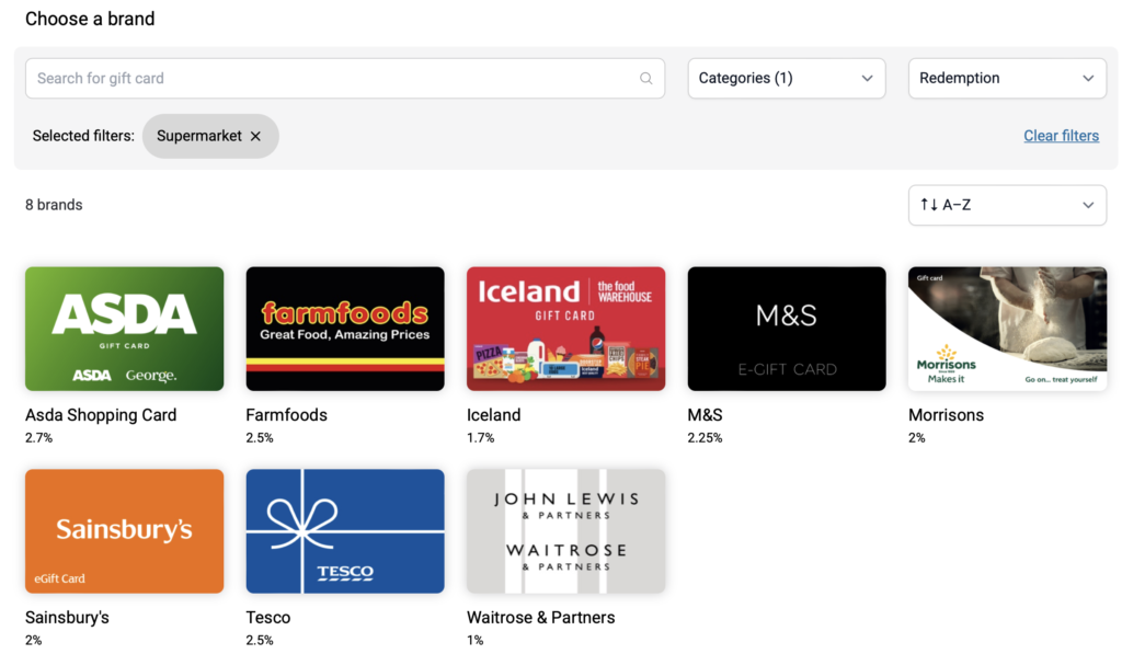 例えば Tesco で毎週買い物をしている方が、ここでギフトカードを購入し買い物に利用することで