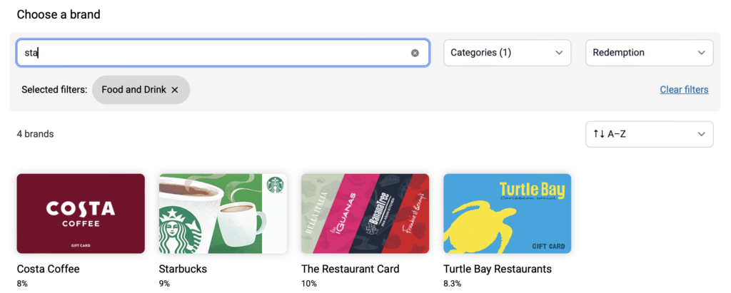 TopCashback で TopGiftCards と検索し、ギフトカード専用ページに行きます。