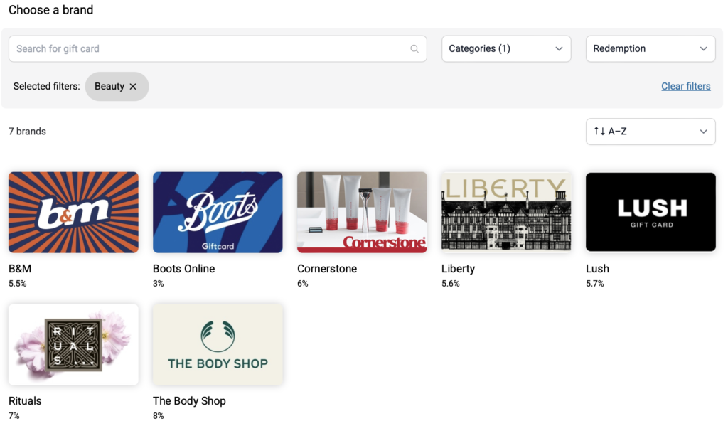 TopGiftCards ではギフトカードの種類によって £1 – £250 といったように購入できる金額の範囲はありますが